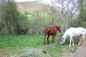 Caballos pastando, existe la posibilidad de contratar rutas a caballo en el pueblo.