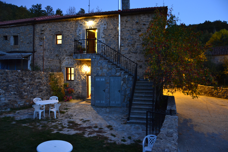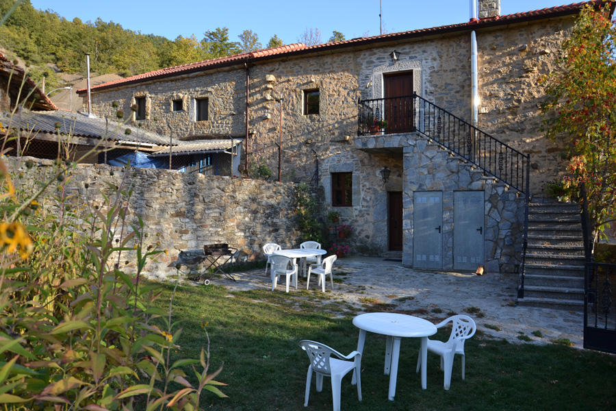 En el exterior de la casa se encuentra el jardín con césped, flores y plantas autóctonas, como es el gran serbal, que adorna con sus frutos rojos el Otoño. Encontrarás también mobiliario de jardín y un gran porche para poder disfrutar del buen tiempo al aire libre. Se accede de forma directa desde ambas viviendas de la casa, y está separado de la calle por un pequeño muro de piedra que no impide disfrutar de las bonitas vistas del pueblo y las montañas.